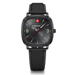 Introducing Vintage Sport – a stylish and sophisticated timepiece! Our innovative squircle-shaped watchcase is shaped like the Wenger logo, and is Swiss-made for the ultimate level of precision. With a 3 year warranty, you can trust that your watch is built to last. And with a classical sunray brushed dial, date window at 6 o'clock, and silver indexes with large numbers, you'll be able to tell the time easily even in the dark, thanks to the Super-LumiNova(R). The red and white logo at 12 o'clock adds a touch of style. Some straps are made from partially recycled PET, while the stainless steel bracelet options are fitted with a sliding buckle for easy size adjustment. And with our quick-spring release system, you can easily change straps in no time. Vintage Sport is the perfect choice for urban and sporty individuals.